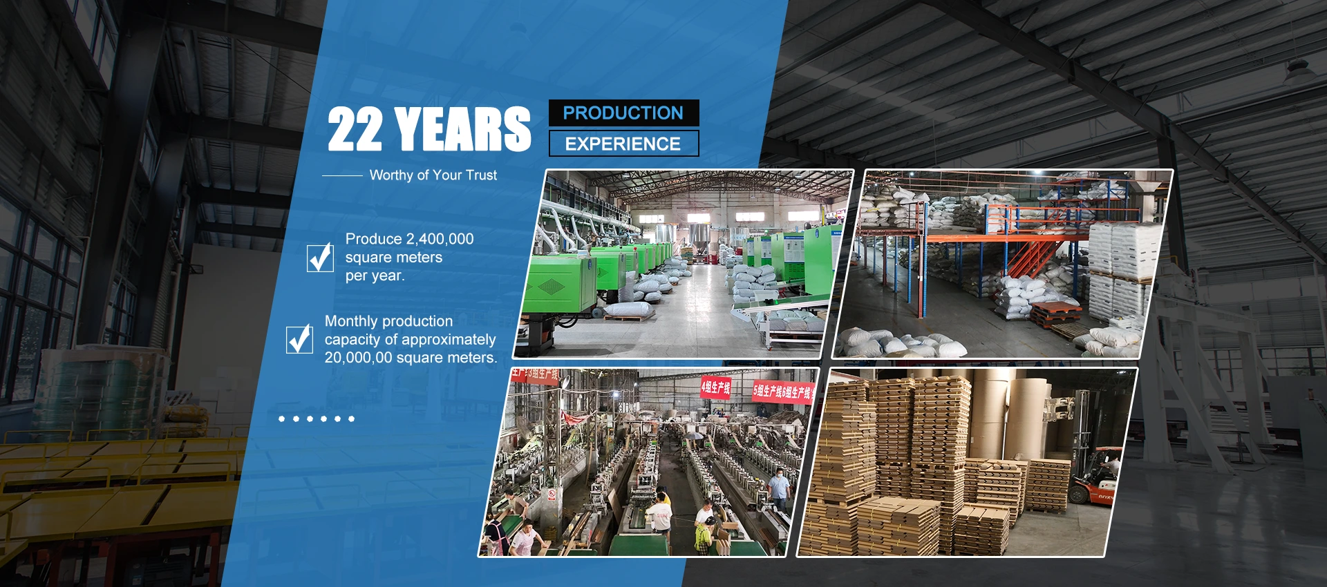 ດ້ວຍເນື້ອທີ່ໂຮງງານຫຼາຍກວ່າ 166,50 ຕາແມັດ ແລະ ກໍາລັງການຜະລິດປະຈໍາເດືອນປະມານ 20,000,00 ຕາແມັດ, ພວກເຮົາສາມາດຜະລິດໄດ້ 2,400,000 ຕາແມັດຕໍ່ປີ.